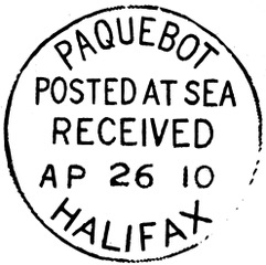 Par décision de l’UPU (Conférence de Vienne, 1891), les lettres affranchies de timbres du pays où était inscrit le navire pouvaient être oblitérées dans un autre pays pour autant qu’une marque « PAQUEBOT » y ait été apposée.