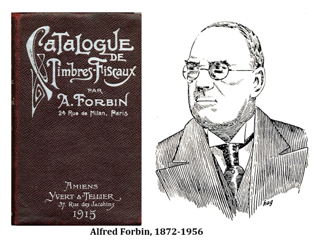 Alfred Forbin (mieux connu sous le nom de A. Forbin), fut le plus important et le plus célèbre négociant en timbres fiscaux au monde entre la fin des années 1800 et 1956. Mais il est encore mieux connu comme ayant publié en 1915 la dernière édition du seul catalogue mondial de timbres fiscaux, qui fait encore autorité aujourd’hui malgré certaines lacunes. Il a aussi édité le catalogue des timbres fiscaux de la France et des colonies françaises dont la dernière mise à jour fut publiée en 1937.