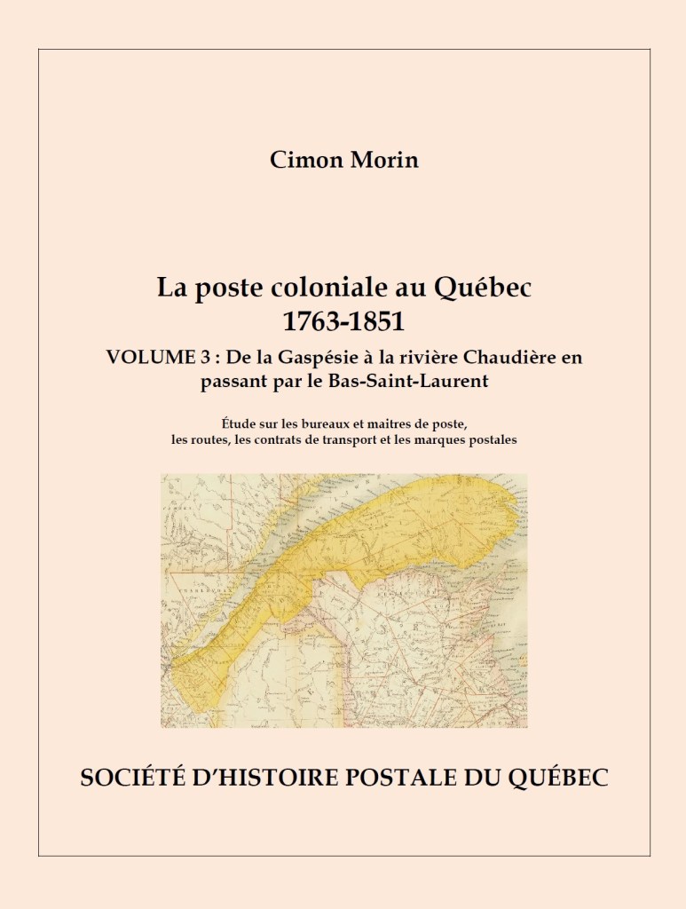 Conférence de Cimon Morin, La poste coloniale au Québec, 1763-1851, vol. 3, Salon du vieux papier de Québec, Hôtel Travelodge, 3125 boulevard Hochelaga, Québec, conférence et lancement à 14 h.