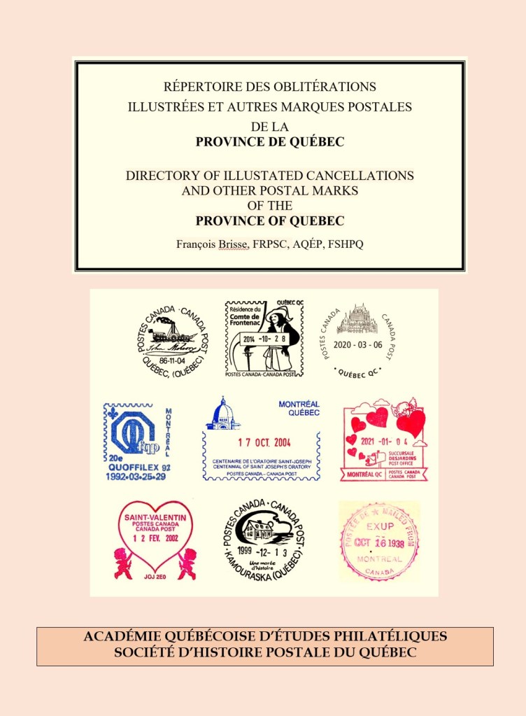 L’AQEP lance le volume de François Brisse Répertoire des oblitérations illustrées de la province de Québec le 25 avril 2025