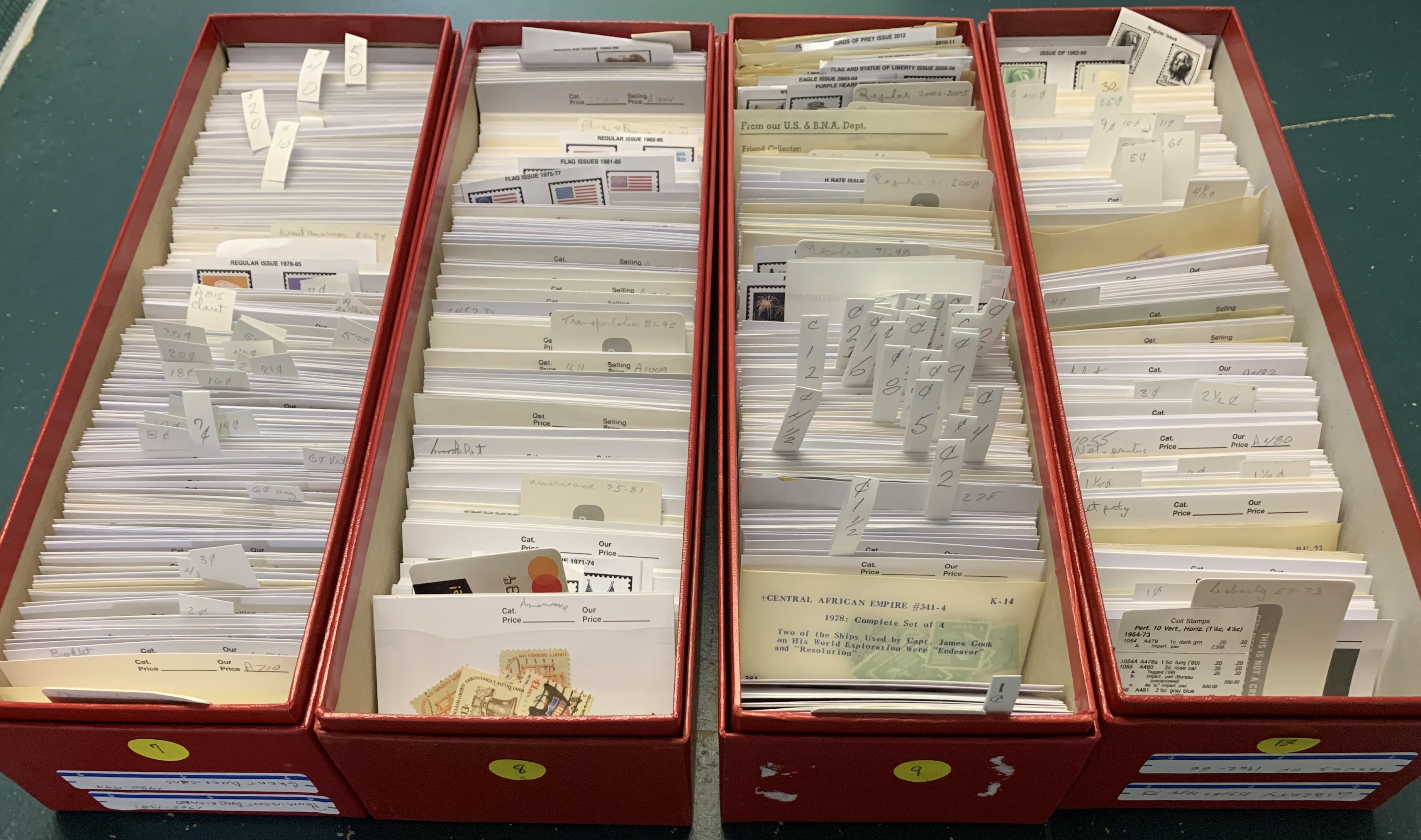 | 227 | ÉTATS-UNIS | Accumulation de timbres réguliers des États-Unis, surtout usagés. Tous classés dans 4 boîtes rouges. Préséance pour les années 1954 à 2012 mais aussi avant ces dates. Contient des doubles. | 70$ | ![]() |
